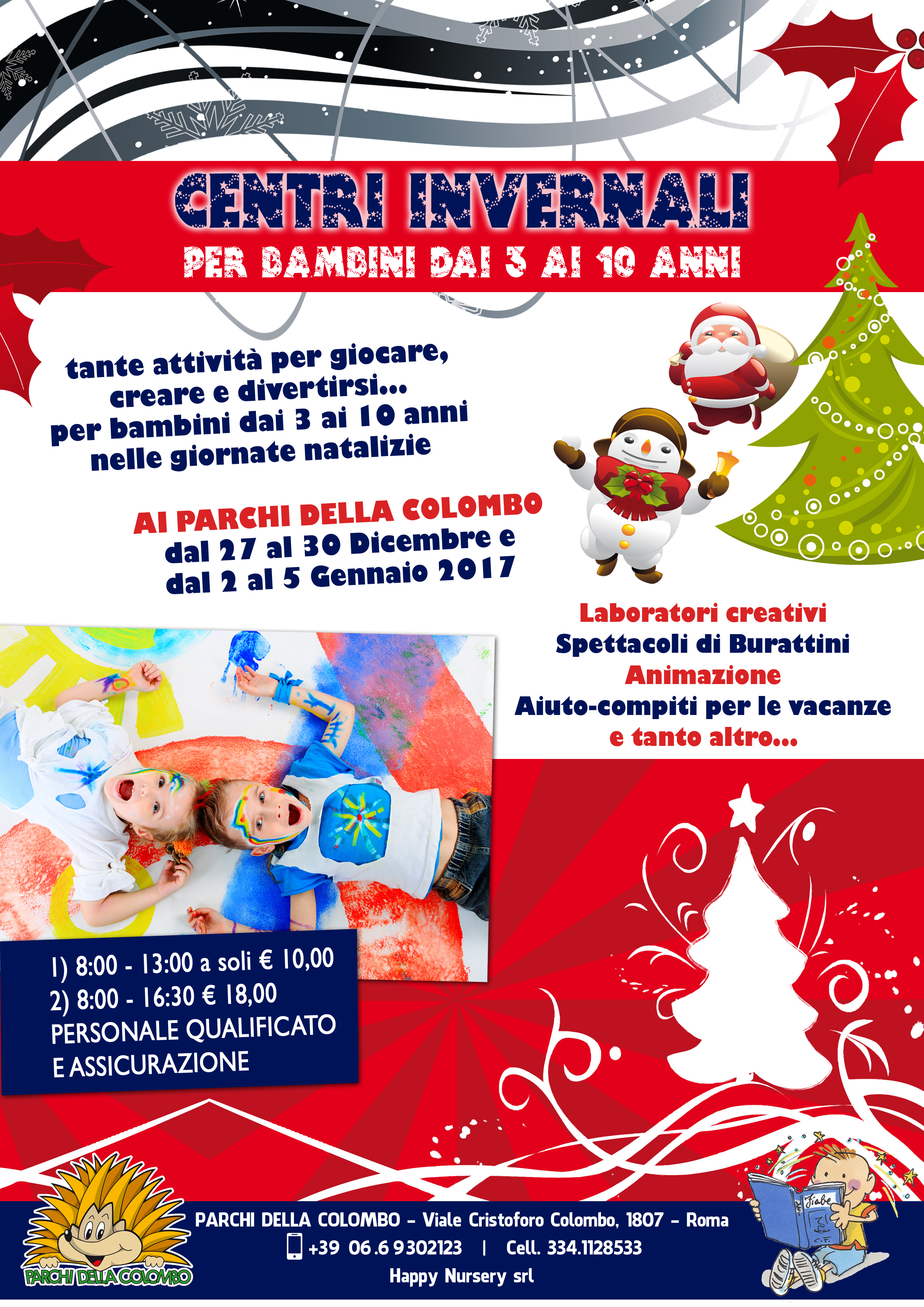 NATALE AI PARCHI DELLA COLOMBO 8 - 15 DICEMBRE DALLE ORE 10,30 ALLE ORE 18 ANIMAZIONE ITINERANTE - BABBO NATALE - GIOCHI SPETTACOLI - ZUCCHERO FILATO - PONY CHRISTMAS VILLAGE Mostra Mercato dell'artigianato, antiquariato, oggettistica e molto altro... DAL 20 AL 24 DICEMBRE DALLE ORE 10,00 SABATO 22 DICEMBRE ORE 17,00 SAGGIO CORYPHEE SCUOLA DI DANZA DEI PARCHI DELLA COLOMBO HEAVEN -EVENTOGRATUITO